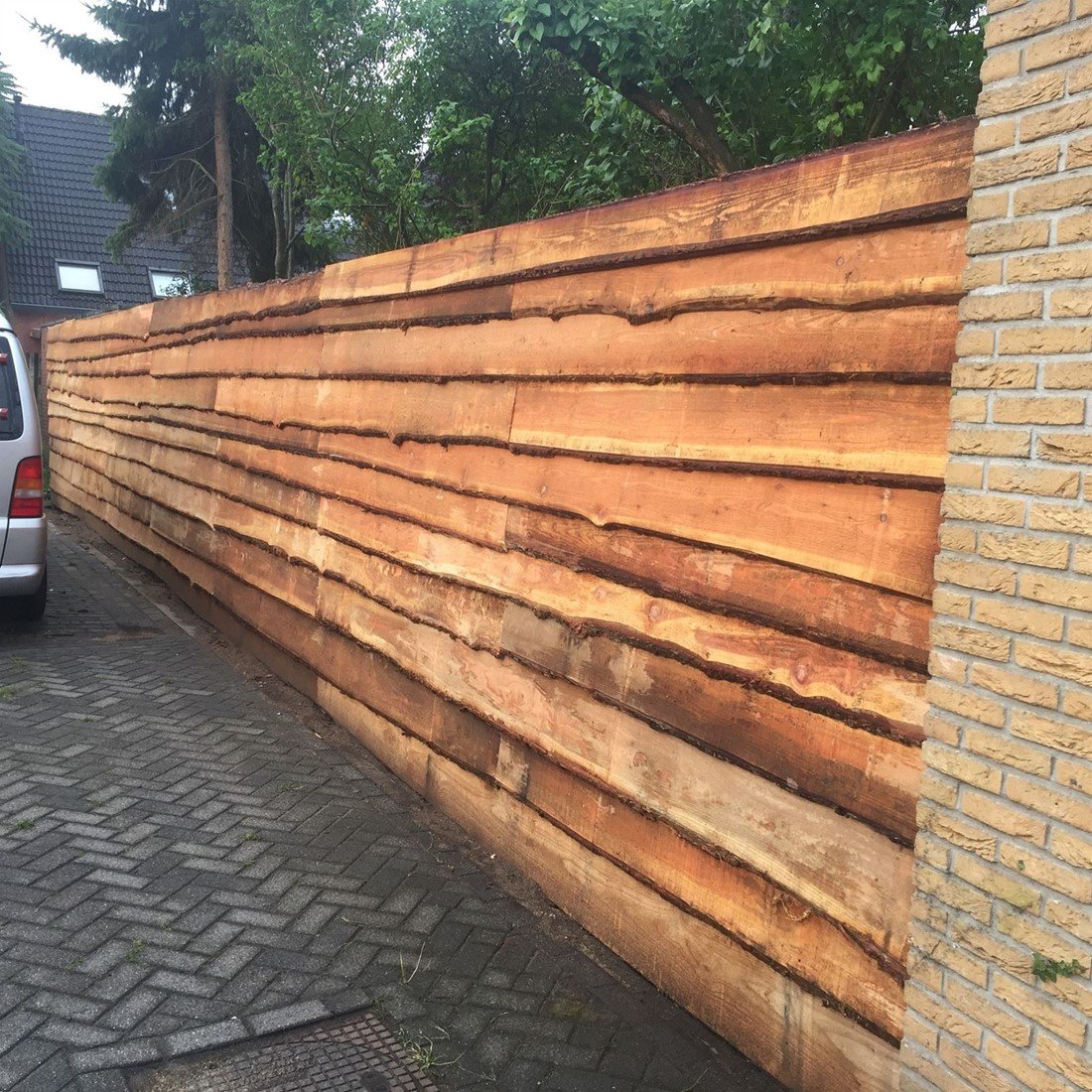 Plaats deze extra brede boomschorsplanken in een potdekselschutting of een "om en om" schutting. Ook kun je deze lariks/douglas schaaldelen verticaal monteren waar bij je de 3e plank altijd dekkend kunt monteren. Let op dat de 30-40cm schaaldelen een natuurlijk verloop hebben. Dit betekend dat ze van punt tot kop in breedtemaat afnemen. Gemiddeld genomen is een plank van 5.00m op de kop 40cm breed waarbij de punt dan rond 30cm breedte zit.
